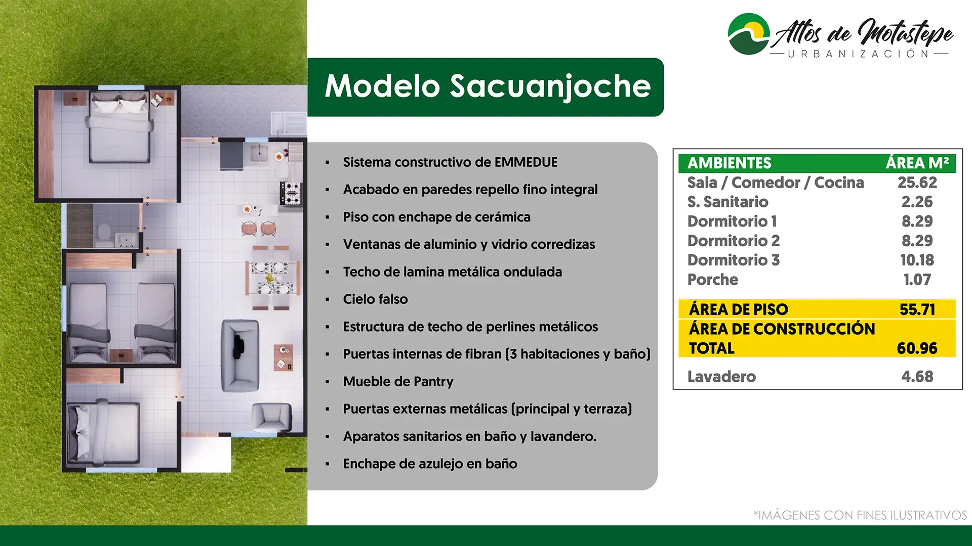 Modelo Sacuanjoche acabados: